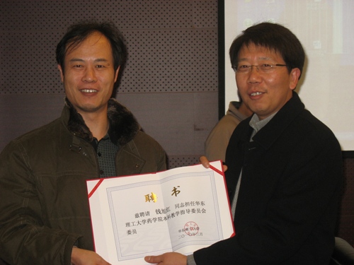 授聘仪式由药学院副院长唐贇教授主持,药学院院长、中国科学院上海药物研究所副所长、校特聘教授蒋华良为各位委员一一颁发了聘任证书。随后,唐贇副院长主持,各专业负责人将正在制订的各专业2010年培养方案的最新进展向各位委员作了汇报,并听取各位委员的意见和建议。与会委员钱旭红教授、宋恭华教授、蒋华良教授、梁鑫淼教授、张彦涛博士等积极发言,对各专业的培养目标、培养要求、学位及学分要求、课程设置及教学执行计划等各个部分都进行了认真的讨论,提出了很多建设性、开拓性的意见。会后各专业负责人将根据各位委员的意见和建议,进一步修改和完善2010年的培养方案。