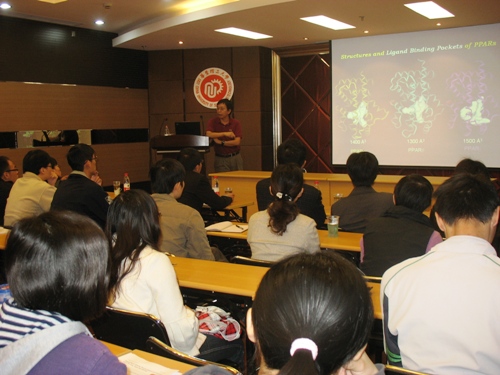突破之一 在学术报告会上,徐华强教授结合在学术界和工业界的丰富药物研发经验,系统介绍了其实验室15年来对多种激素受体的结构与功能进行的深入详细的研究,其中PPAR受体的研究成果为设计开发肿瘤、糖尿病、骨质疏松等重大疾病的特异性小分子药物提供了坚实可信的结构基础,研究论文多次发表在Science, Cell和Nature等国际顶尖科学期刊中。同时,徐华强教授还介绍了最近开展的对植物激素受体的研究成果,其中对于脱落酸受体的结构和功能的研究于2009年作为封面文章发表在Nature杂志上,该成果同时被Science杂志评为2009年十大科学。
