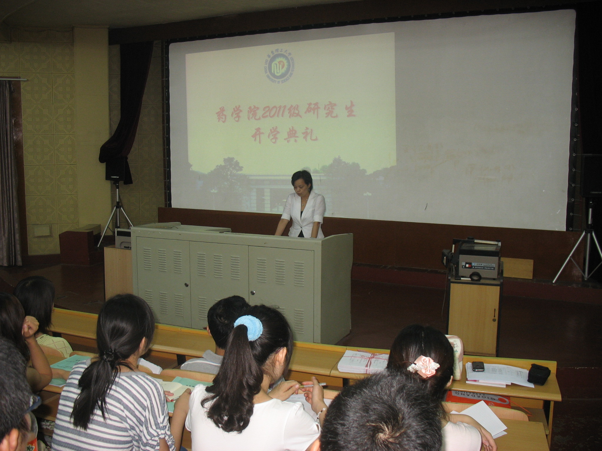 徐玉芳教授首先代表院领导致辞,对2011级研究生新生表示祝贺和欢迎,对新生寄予了殷切的希望,希望同学们在药学院这样一个朝气蓬勃的学院中茁壮成长。叶金星副教授随后介绍了学院的总体情况,展示了学院近年来取得的一些优秀成果,并表达了对同学们学习和科研齐头并进的美好祝愿。