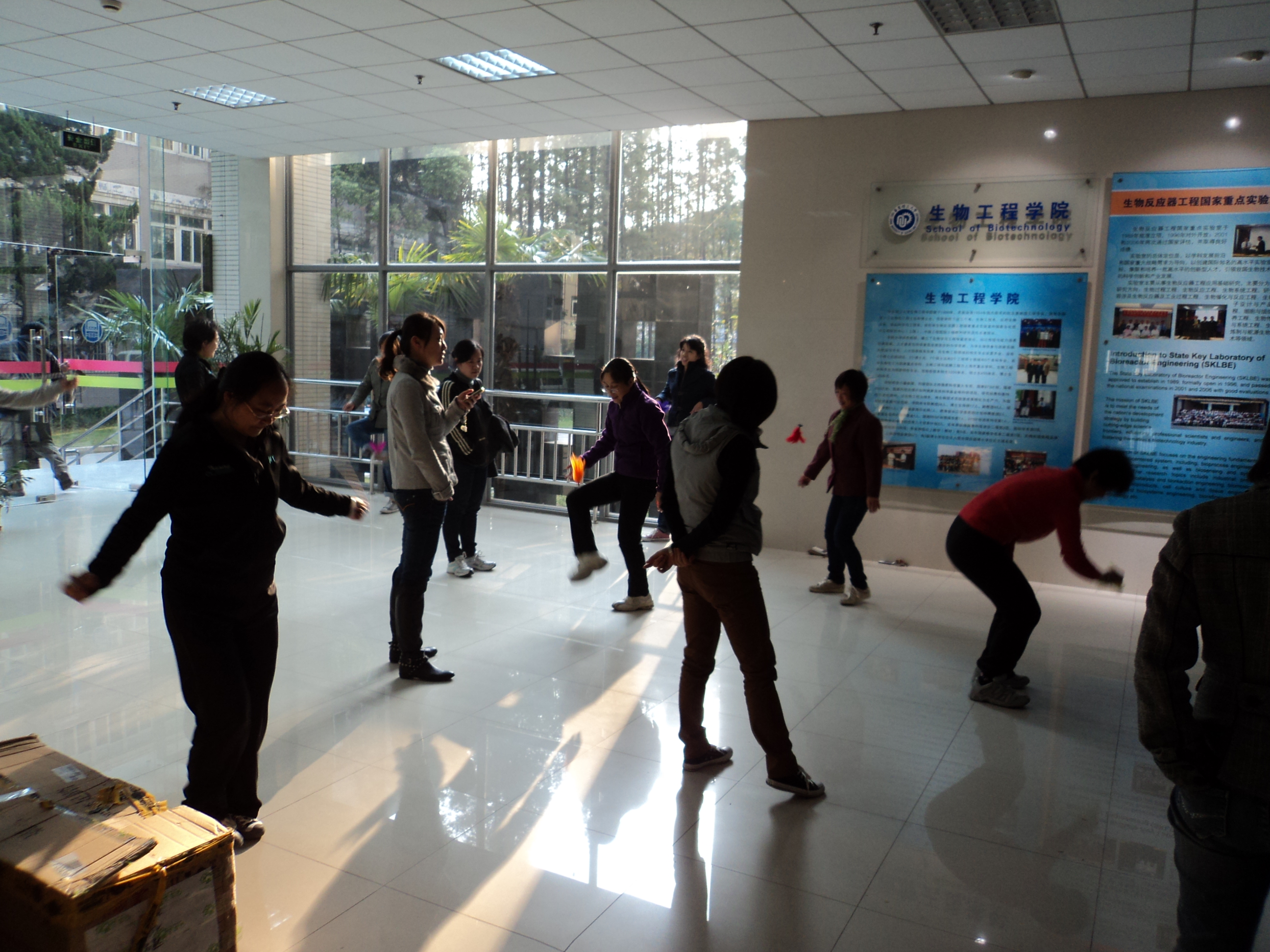 2011年11月11日,药学院部门工会以“健康、活力、合作”为主题,召开了第四届教工趣味运动会。运动会比赛项目设个人赛和团体赛,包括:飞镖、单人跳绳、 单人踢毽子、三人四足、带乒乓球接力、跳长绳等。各项赛事寓趣味、合作于运动中,让大家在紧张繁忙的工作之余,在轻松愉悦的竞技氛围中放松身心,增进了解,加强合作,锻炼体魄。此次参加比赛的教工达到43人,85人次。参赛教师覆盖学院所有部门,参赛人数达到学院教工总人数近50%,是历届药学院教工运动会参赛人数最多的一次。