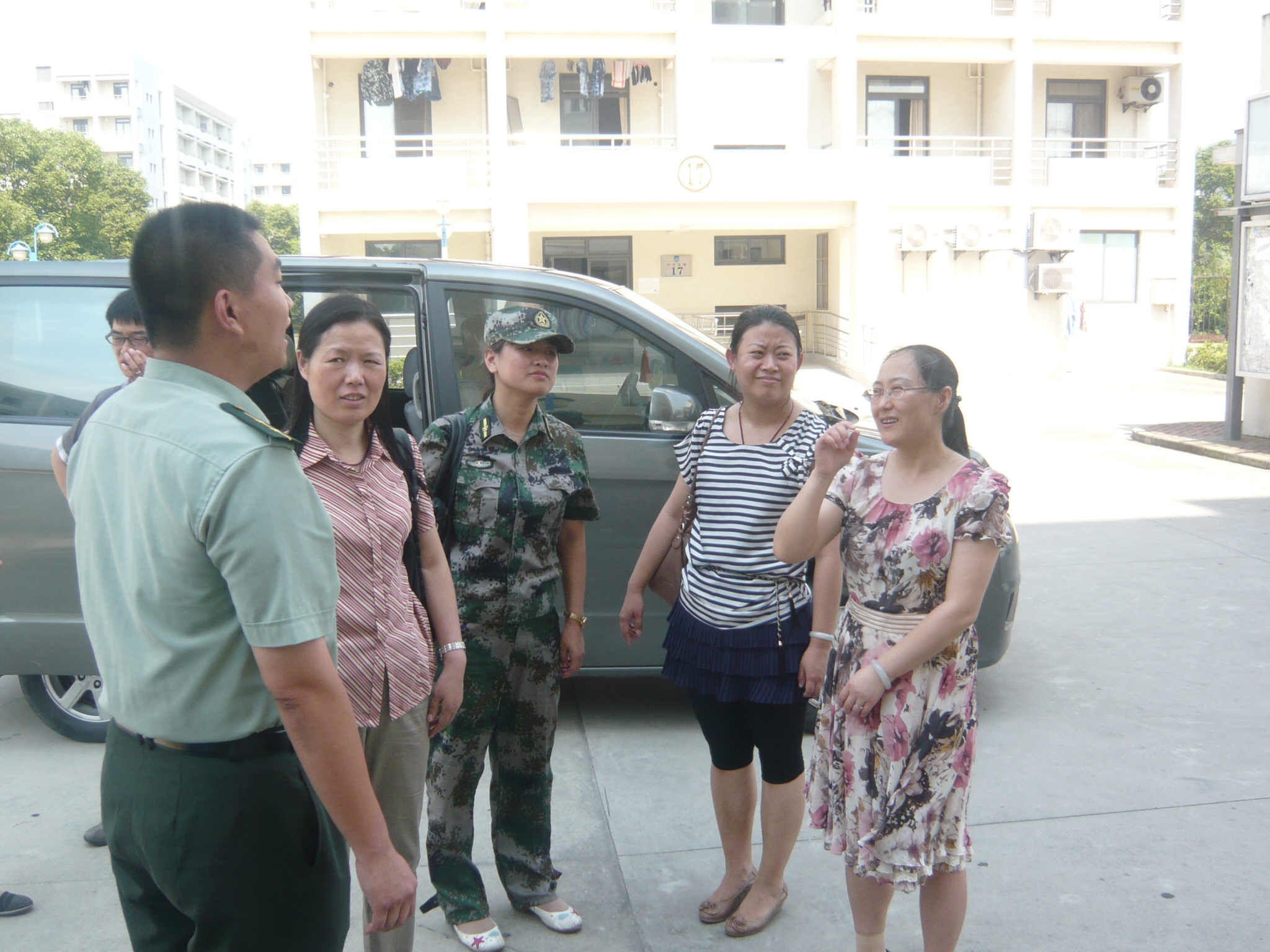 7月4日下午两点,炽日灼地,药学院党总支书记王喆,党总支书记、学工委主任王越来到奉贤前来探望军训官兵和受训学生。