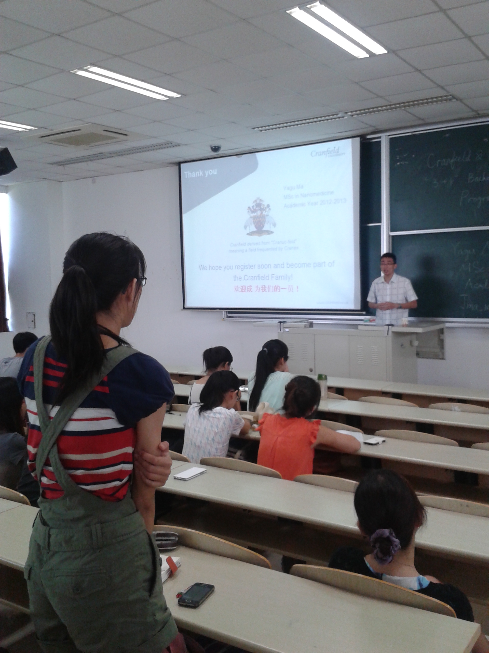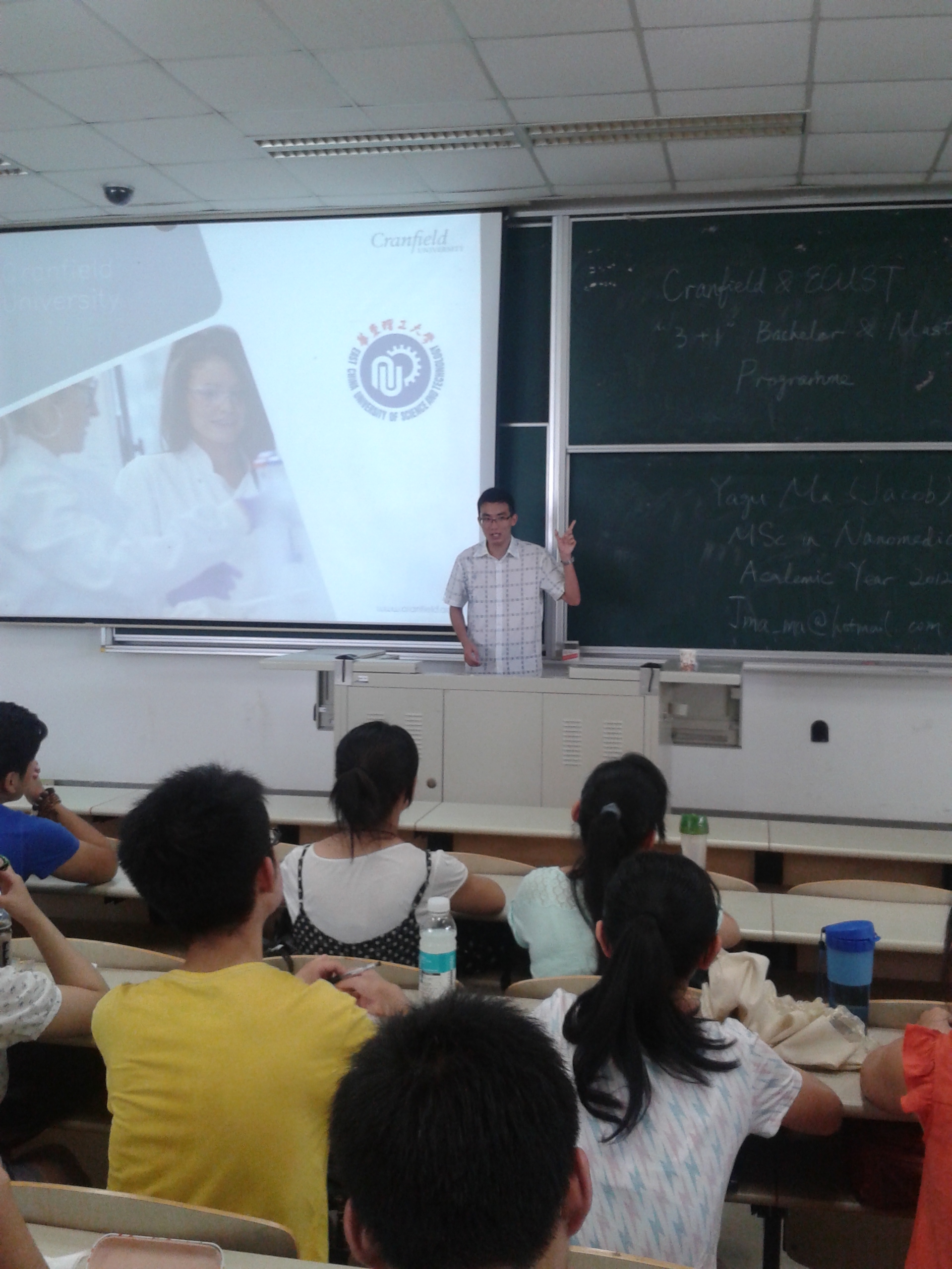 9月13日下午在奉贤校区B102,应唐赟副院长邀请药学院09级药学专业毕业生马亚谷同学与学院本科生一起分享了他在英国Cranfield 大学进行“3+1”学习的经历。
