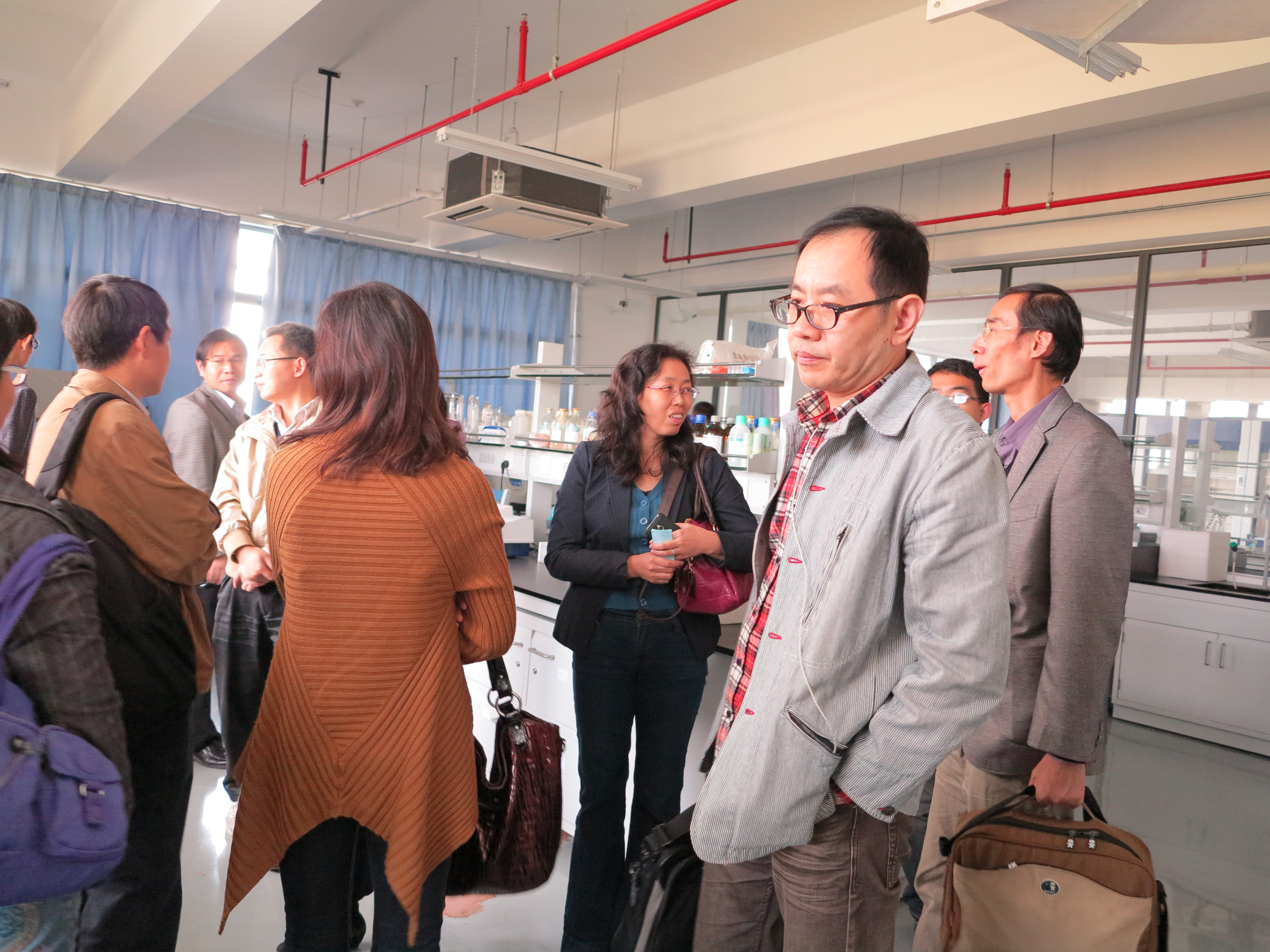 会议由唐贇教授主持,与会老师首先在实验中心主任曾步兵教授的带领下,参观了奉贤校区的药学实验中心。查看了实验中心的制药工程、药物制剂、药物分析、药物合成、药理等实验室和波谱、液相色谱等仪器分析室。奉贤校区药学实验中心,是一个现代化的具有全开放式实验平台的实验中心,开放期间实行预约登记制度,学院师生可以刷校园卡进入实验中心的实验室和仪器室,实验仪器可以网上预约,常用药品领用采用登记制度。