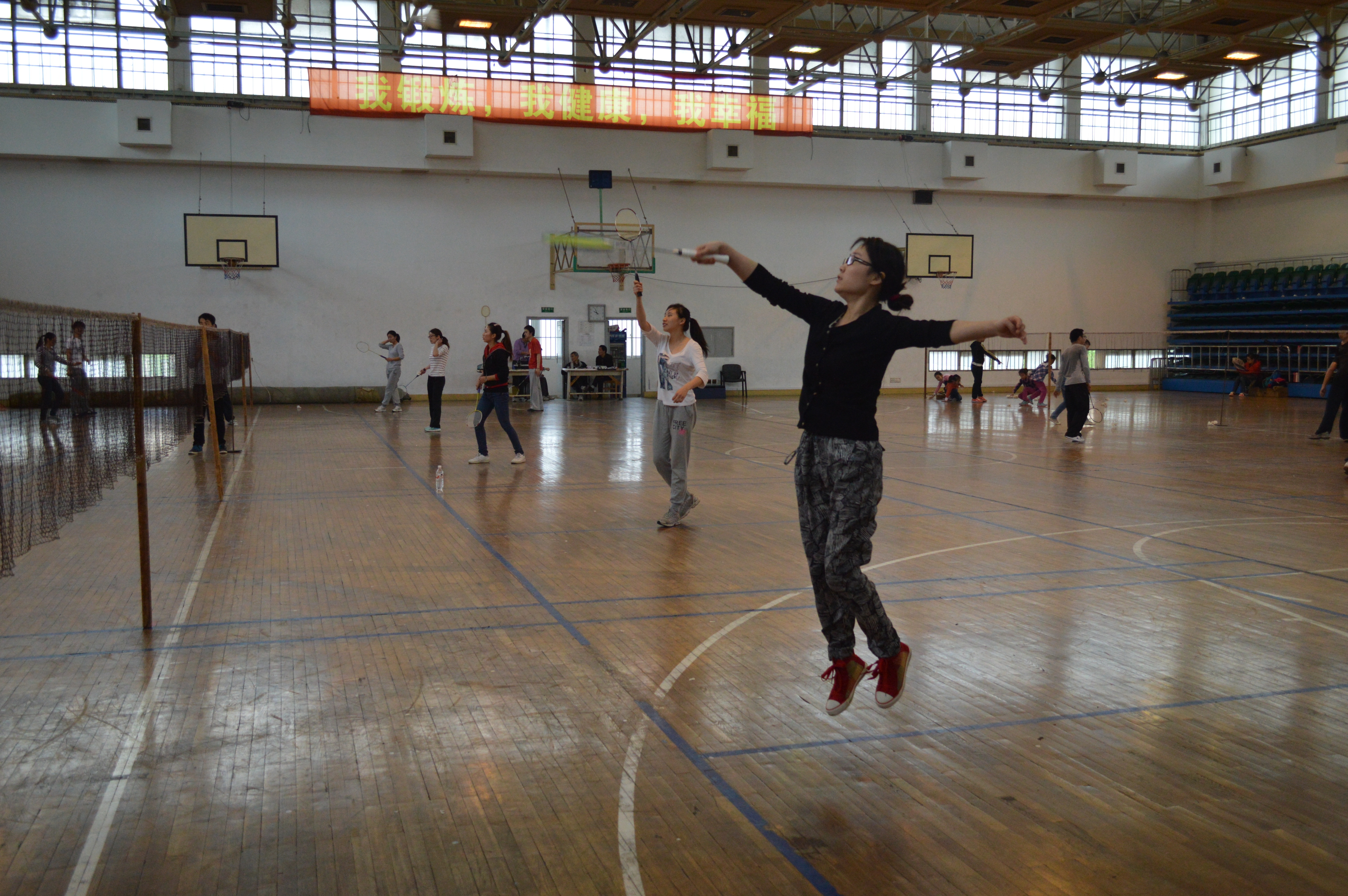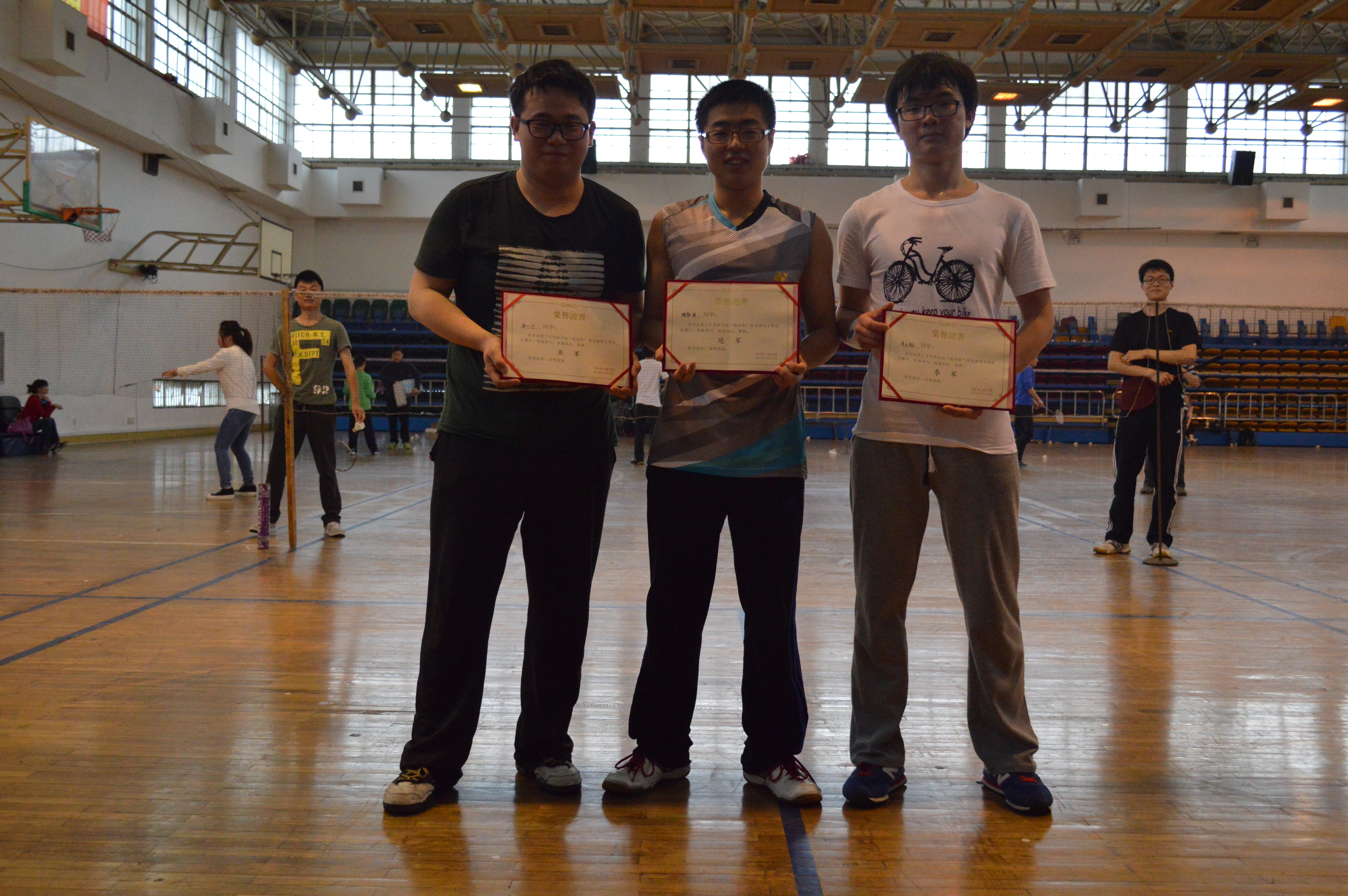 各位羽毛球选手在赛场上展开激烈的争夺,选手们斗志斗勇,敢拼敢打。羽毛球男子组更是高手云集,精彩纷呈。尤其是男子组选手顾勃琪和邓一汀的冠亚军之战,强强对战,犹如江湖上的两个武林高手在进行一场血战,引来了观众的阵阵喝彩。