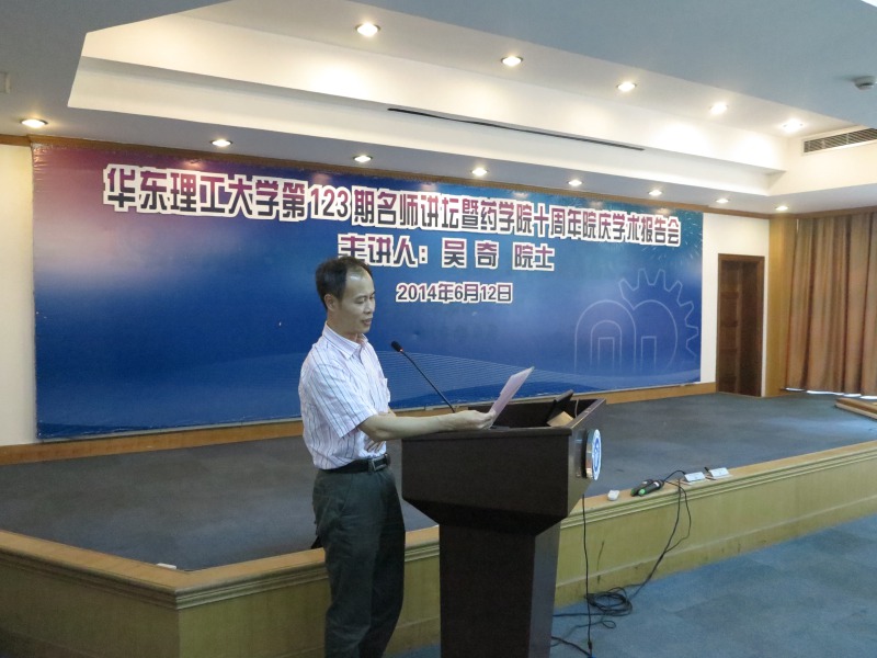 6月12日下午,中国科学院院士、香港中文大学伟伦化学讲座教授和物理荣誉教授吴奇院士应药学院邀请,做客我校第123期名师讲坛,作了题为“自由阳离子链如何促进基因转染”的学术报告。报告会前杨存忠副校长与吴奇院士进行了交流,报告会由药学院院长蒋华良教授主持。