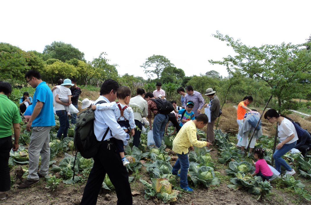 一路上经过简单激烈的儿童猜谜语等趣味节目后,车辆满载欢声笑语到达了我们此次活动的第一个目的地——沐雨农庄。沐雨农庄为上海环科院、同济大学等单位的生态研究基地,基地内有小龙虾、黄鳝、牛蛙等养殖区,还有蔬菜、枇杷等种植区。进入农庄后,小朋友都兴奋不已,很快大家参与到了农庄的各项科普活动中,或采摘琵琶,或钓龙虾,或参观农庄内的各个养殖基地。农庄的科普参观体验结束后是简单的午餐,午餐的所有食材全部来自基地。午餐结束后,小朋友们亲自动手挖菜、摘豆子以及挖土豆,虽然已是中午艳阳高照,但是大家仍然玩得很开心。整个上午的科普体验让小朋友们切实地体会到了我们日常生活中的“食”之来源,更让大家体会到了“食”之来之不易。