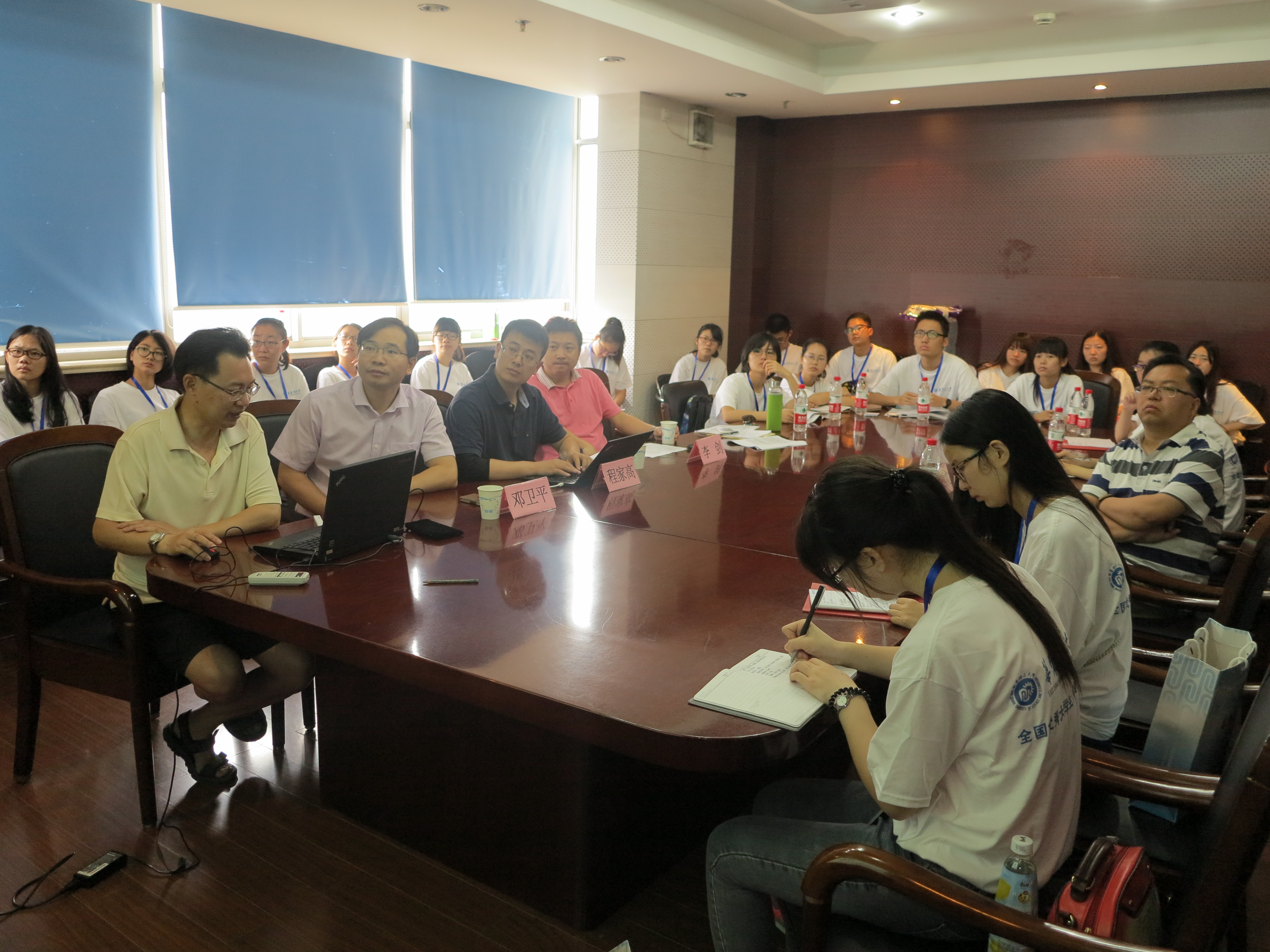 随后的师生面对面环节获得了众多教授博导的大力支持,杨弋教授,李洪林教授、杨丙成教授,李浩教授,叶金星教授,冀亚飞教授,刘桂霞教授,高峰教授等与学生进行了密切的交流。杨弋教授以《大圣归来》引入课题描述,用火眼金睛和金箍棒作为比喻,生动传神的描述让同学们大开眼界。同学们积极提问,老师们解答细致幽默,整个过程气氛活跃,不时爆发出阵阵笑声。下午,两组专家分别对28位同学进行了能力考核。
