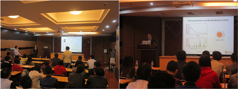 10月28日下午,应华东理工大学药学院谢贺新教授的邀请,新加坡南洋理工大学化学与生物分子工程学院的浦侃裔(Kanyi Pu)教授,在实验十八楼315室作了题为“In Vivo Molecular Imaging Using Semiconducting Polymer Nanoparticles”的学术报告。朱维平教授、杨有军教授等几十名师生参加了报告会。