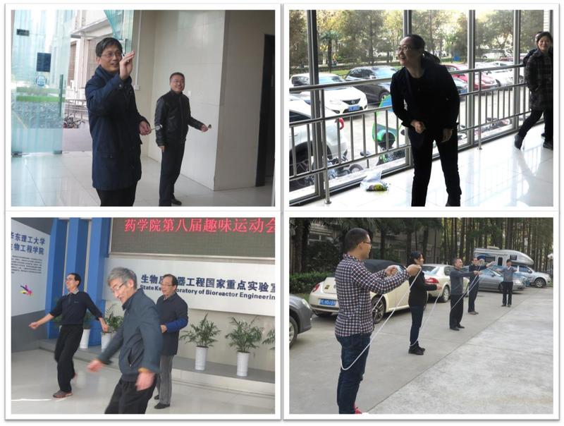 2016年12月2日中午,实验十八楼下气氛十分热烈,药学院第八届教工趣味运动会在此隆重举行。此次趣味运动会受到药学院党政领导的大力关心与支持,共设飞镖、踢毽子、跳绳、乒乓接力、三人四足、跳长绳、滚铁环接力等趣味项目。
