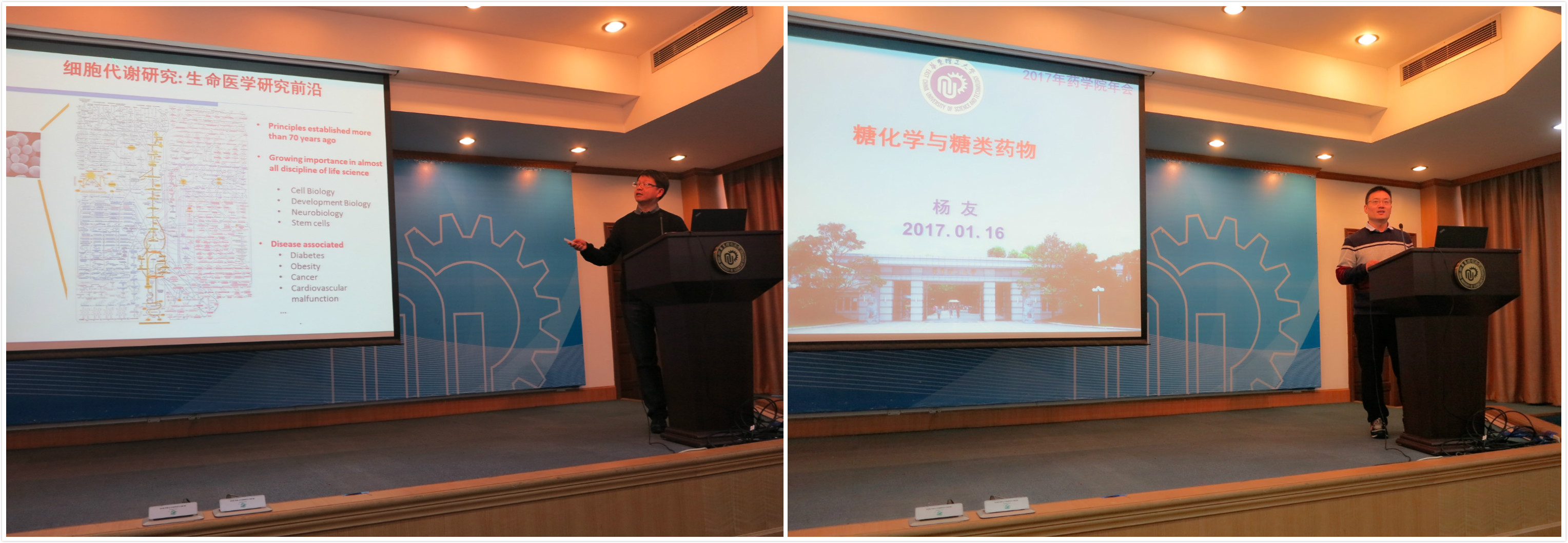 邓卫平、任国宾、李剑、王越分别对药学院2016年学科建设及研究生工作、本科生教学及外事工作、科研及实验室管理工作、学生工作等方面进行了总结,同时对相关领域2017年相关工作要点进行了介绍。随后,举办了学院发展专项津贴责任岗位签约仪式及2016年药学院优秀青年教师颁奖仪式。并邀请国家杰出青年科学基金获得者杨弋教授,杨友教授做学术交流。