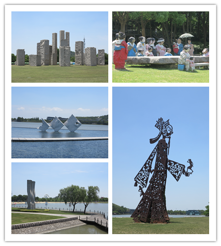 月湖雕塑公园坐落于上海市松江区,公园设计以春夏秋冬四季为主轴,将月湖沿岸分割成四季码头水岸,风景优美,遍布四季常青的果岭草地,随处可见姿态各异的雕塑作品。既适宜老师们三五为组闲庭信步、放飞思绪,又适宜小朋友嬉戏玩耍。进入园区,大一些的小朋友们一起结伴在公园夏岸的亲水沙滩边玩耍,有的拿着沙滩工具开心的“劳动”,有的结伴在戏水池边戏水,嘉年华游艺区的各个项目也是小朋友们的最爱,现场一幕幕和谐欢快的景象;擅长摄影的老师走遍了月湖雕塑公园春岸、夏岸、秋岸和冬岸,用相机尽情拍下美好的风景,留住这永恒的瞬间;有小宝宝的老师们三三两两聚在一起互相切磋着育儿经,说不完的感悟;有些老师和家属们还都互相认识,见面不忘交谈着工作上的合作内容……平日里看不到的老师家属,见不着的大宝二宝们,今天都聚集在一起,在上海月湖雕塑公园演绎着全家总动员的唯美!