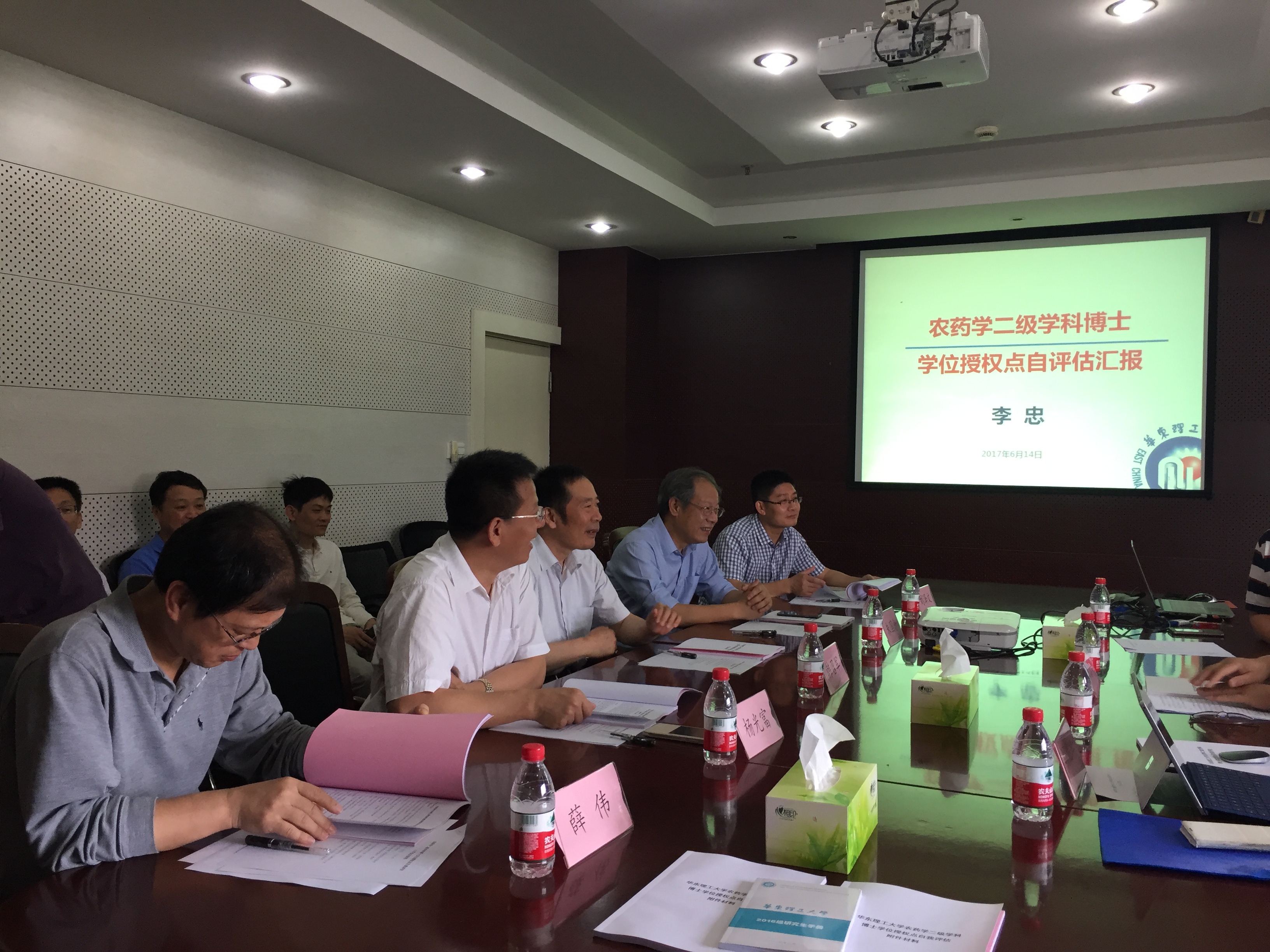 6月14日药学院农药学二级学科博士学位授权点在徐汇校区召开了自评估专家评审会,会议由药学院院长宋恭华主持。专家组由国务院学位委员会植物保护学科评议组成员、南京农业大学植物保护学院韩召军教授,浙江大学农业与生物技术学院、农药与环境毒理研究所朱国念教授,教育部科学技术委员会化学化工学部委员、国家自然科学基金委员会第十三届化学学科评审组成员、华中师范大学农药与化学生物学教育部重点实验室主任杨光富教授,贵州大学贵州省精细化工研究开发中心副主任薛伟教授,中国植物保护学会青年工作委员会副主任、中国昆虫学会毒理学专业委员会委员、江苏省昆虫学会理事、南京农业大学植物保护学院刘泽文教授组成。