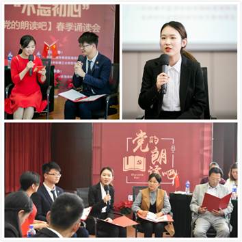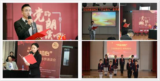 诵读会在《幸福新起点》的美妙歌声中拉开序幕。《扬帆起航》、《不忘初心、牢记使命》及《毛泽东七律·长征》等作品生动刻画了先辈们为中国共产党的建设而付出的艰苦卓绝的努力,弘扬了中国共产党人经历风雨磨难而愈发坚韧的红色精神,引起了现场听众强烈的心灵共鸣。社区老党员动情地讲述了《二小放牛郎》,让人潸然泪下;社区群众代表带来的《习近平给父亲的生日贺信》,一字一句满含深情。由我校学生带来的朗诵作品《不忘初心》和《有一首歌》,以其慷慨激昂的气势赢得在场观众的连连掌声。