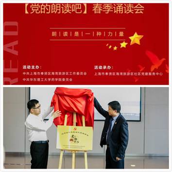 2018年4月21日下午,党的朗读吧-春季诵读会暨华东理工大学药学院党委与奉贤海湾旅游区党工委区域化党建共建项目揭牌仪式在海湾旅游区行政服务中心举行。
