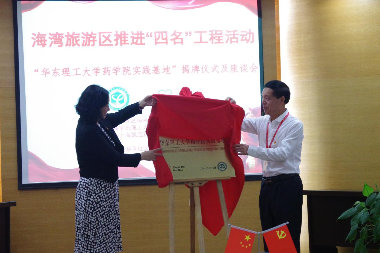 与会人员首先参观了上海凯宝药业股份有限公司党建阵地及生产车间。随后,张青与王国明签订了党建结对共建协议书,并为华东理工大学药学院实践基地落成揭牌。
