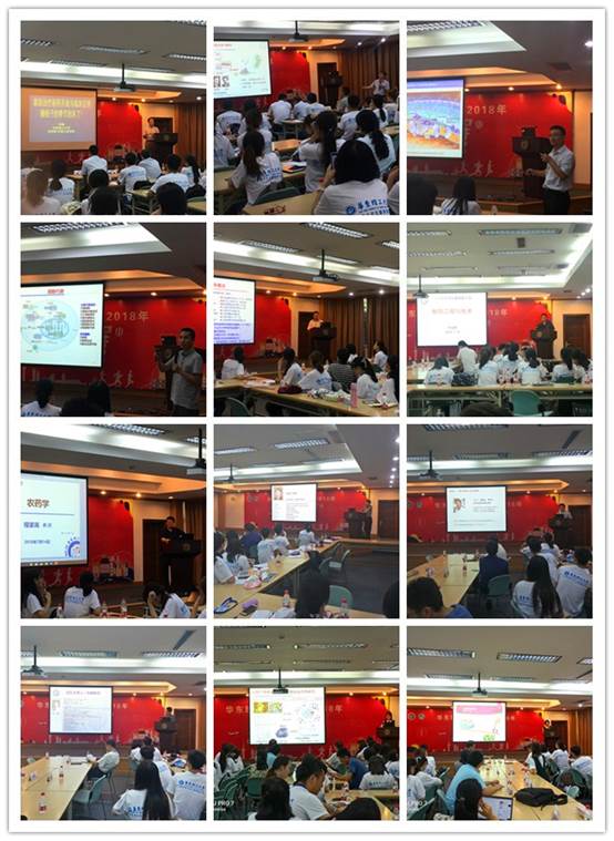 夏令营包括学术报告、专业介绍、师生面对面、能力考核及实验室参观等环节。开营仪式后,肖啸教授、谢贺新教授、杨友教授和赵玉政教授给大家带来了精彩而生动的学术报告,现场学生纷纷表现出了对科研的向往和对老师的敬佩之情。在14日的专业介绍环节中,药学院各学科负责人唐赟、叶金星、程家高等教授向学生分别介绍了药学一级学科、制药工程与技术和农药学二级学科的学科特色和优势、研究方向、师资力量、发展前景及招生规模等情况。随后,介绍了钱旭红院士、肖啸教授、王卫教授和李洪林教授等优秀研究团队的研究特色和主要方向,以及研究生培养和招生专业等信息。师生面对面环节获得了众多教授的大力支持,教授们与学生进行了互动交流。现场学生积极提问,老师们解答细致幽默,整个过程气氛活跃,不时爆发出阵阵掌声。下午,药学院组织面试专家组分四组对70位学生进行了能力考核。