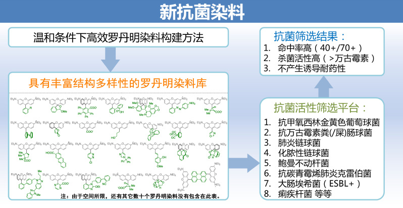 细菌进化机制决定了抗生素的使用必然会导致耐药性的出现。但抗生素在临床和养殖业的滥用和无序排放,使这一进程大大加快。近些年来,具有多重耐药机制的超级细菌不断涌现,世界各地由于细菌感染而无法医治的案例时有发生。细菌耐药已经成为全球重大公共卫生安全问题。从全新的分子平台发现抗菌活性化合物是本领域重要研究方向。我校药学院钱旭红院士团队杨有军教授课题组与上海交通大学药学院陈代杰教授课题组深入合作,在该研究方向取得进展。近期,相关工作被《自然·通讯》以“A diversity-oriented rhodamine library for widespectrum bactericidal agents with low inducible resistance against resistant pathogens”在线报道。
