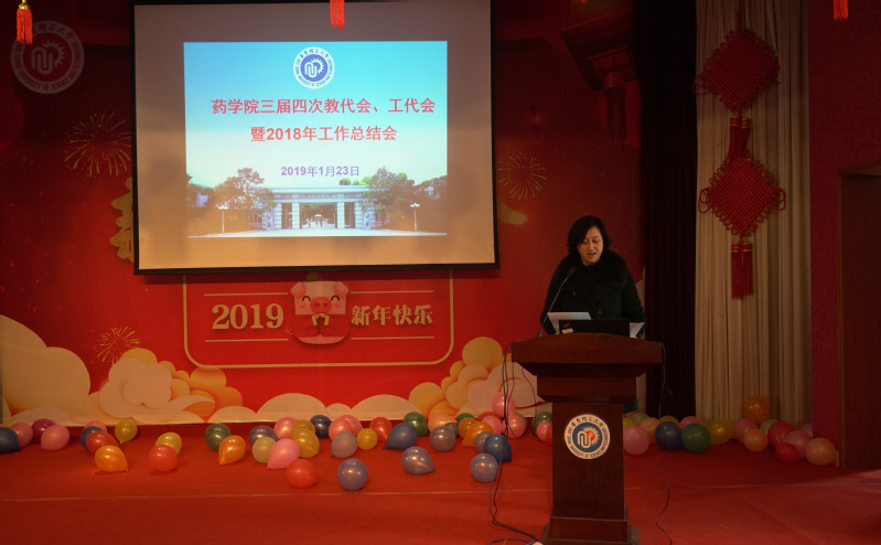1月23日下午,药学院第三届四次教代会、工代会暨2018年工作总结会在徐汇校区八角亭二楼举行。药学院全体教职工参加了会议。会议由学院党委书记张青主持。