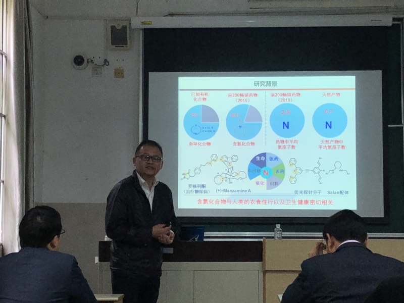 黄汉民的研究工作致力于过渡金属催化的C–N键活化研究,基于过渡金属催化实现了一系列新型含氮分子的高效构建。黄汉民详细介绍了其课题组在C–N键活化及复分解研究领域的工作进展,分享了在实验过程中发现和解决问题的方法。精彩的报告让药学院与化学院的师生们意犹未尽,在报告结束之后大家还就相关的问题进行了热烈的互动。
