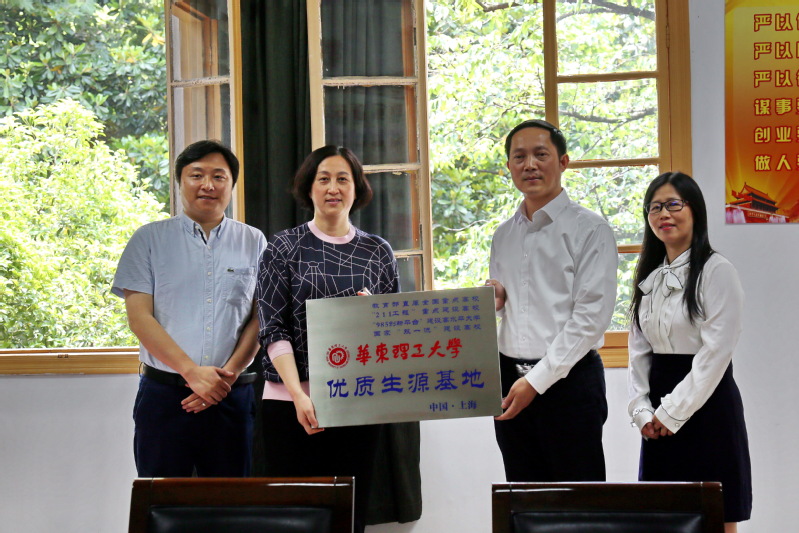 14日上午十点,我校本科浙江招生宣传组一行来到杭州高级中学进行招生宣传,并进行了“华东理工大学优质生源基地”授牌,杭州高级中学校长、党委副书记蔡小雄,教学处副主任王建勋等参加授牌。