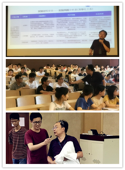 徐宏勇列举了国内化工行业发生的一系列重大安全事故,由此展开,向师生们普及了实验室安全知识。他通过实验室违规实例,生动形象地阐明了违反安全规定带来的危害;并与现场师生互动,演示了灭火毯的正确使用方法。寓教于乐,强化了师生们对实验室安全知识的理解。