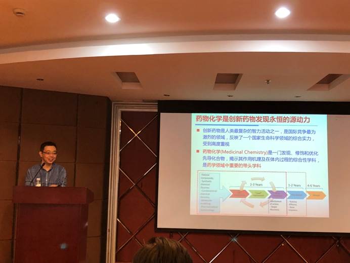 张健主要从事药物设计、药物化学和化学生物学研究,特别是精准靶标识别和First-in-class原创药物先导发现等方向做出了一系列突破性成果。在报告中,他从First-in-class原创药物的概念出发,结合课题组的研究成果,向在场的师生们介绍了如何进行原创药物的优化筛选,并详细描述了其中的各种问题及最终的解决方案。让在场的师生们对创新药物的研究有了更深入的了解。