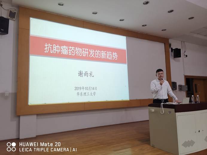 应药学院邀请,微境生物医药科技(上海)有限公司总经理谢雨礼博士于10月14日18:00在八教201为药学院师生做了题为“抗肿瘤药物研发的新趋势”的前沿学术报告。报告会由邓卫平教授主持。