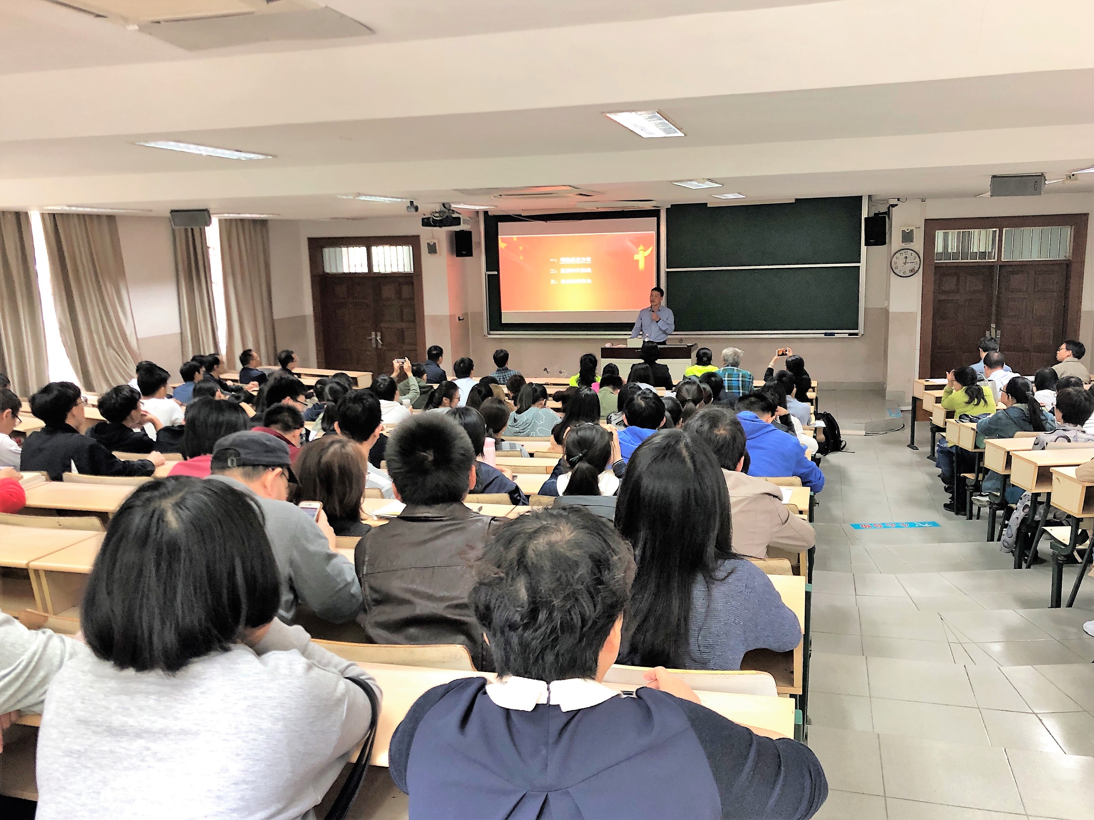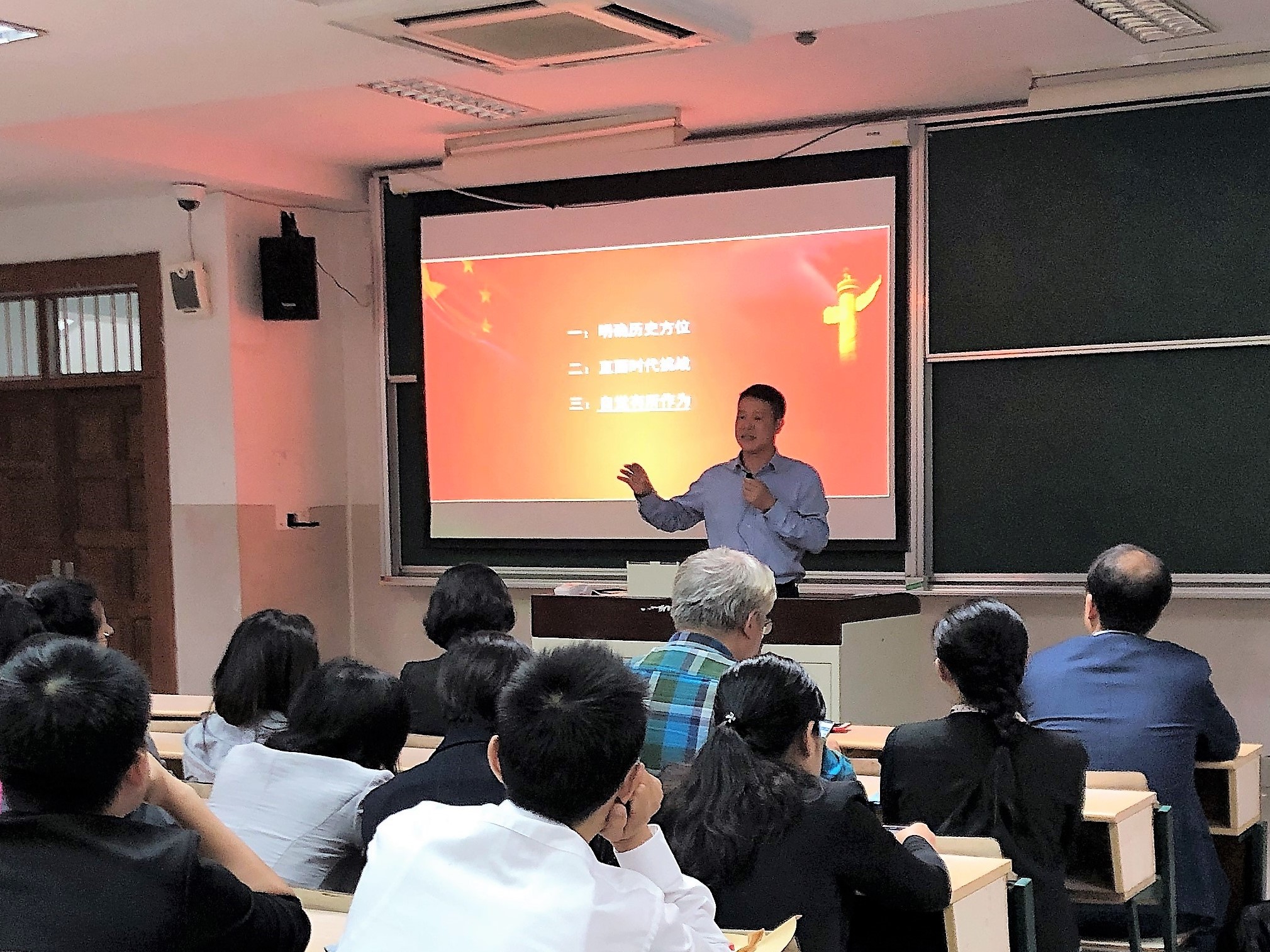 邱卫东从“直面历史方向”、“直面时代挑战”、“自觉有所作为”三个方面,旁征博引,全面精辟论述了中国特色社会主义进入新时代,国家发展所面临的形势和任务,就高等院校师生如何不忘初心、牢记使命,继续奋斗提出了自己的观点。邱卫东指出了作为新时代高校师生的使命和责任,并对与会师生提出希望,要自觉在工作学习中努力践行“不忘初心、牢记使命”的深刻内涵,积极为新时代中国特色社会主义建设贡献智慧和力量。