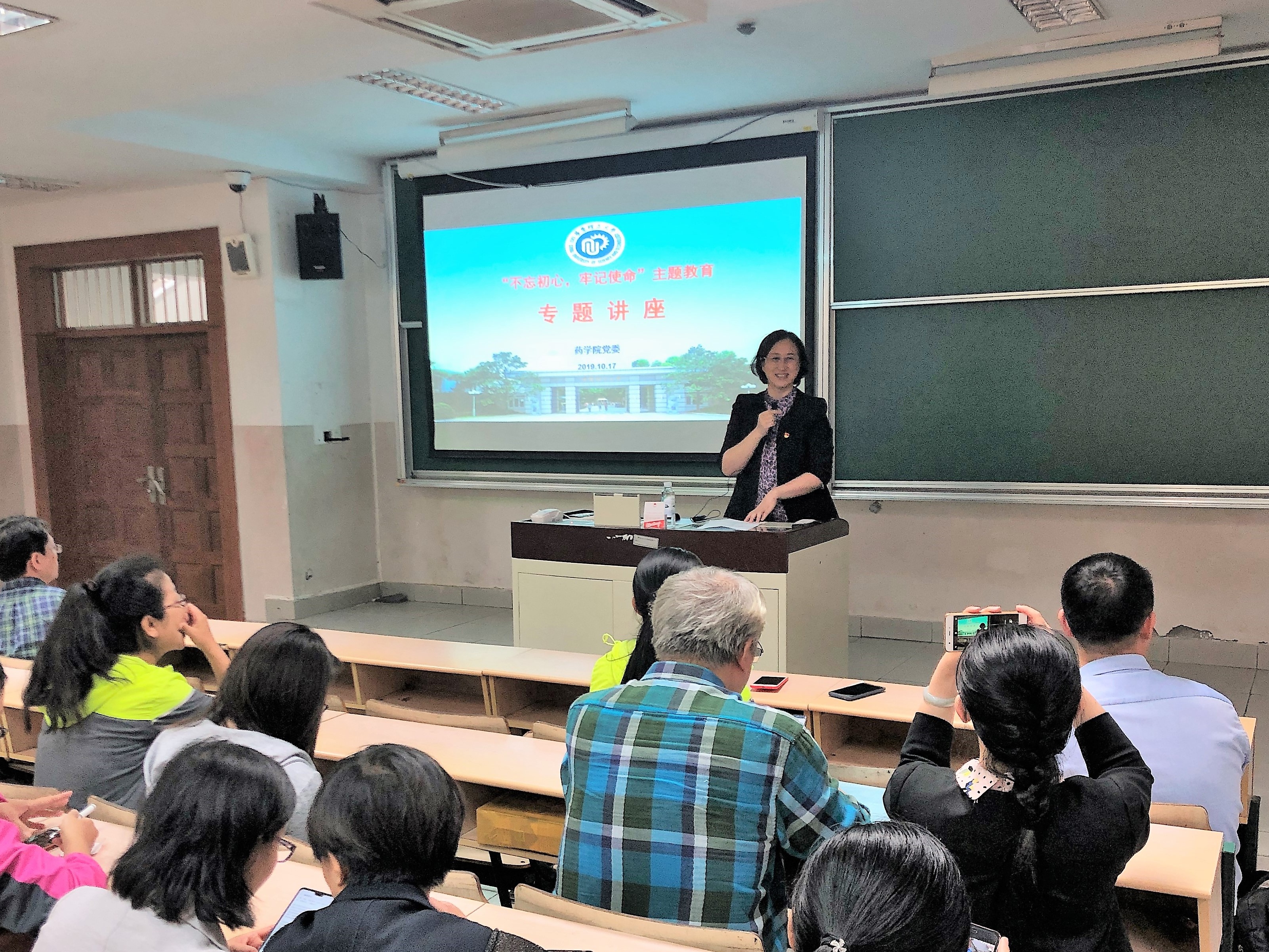 10月17日中午,药学院党委在四教111举办“不忘初心、牢记使命”主题教育专题报告会。马克思主义学院副院长邱卫东博士应邀做了题为“新时代推进中国特色社会主义的应有自觉”的报告。药学院全院教职工和部分研究生党员参加了会议,报告会由药学院党委书记张青主持。