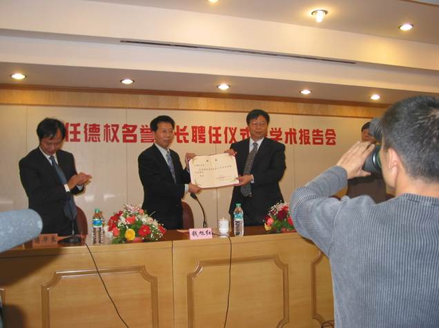 在任先生亲自牵头和具体指导下,2005年2月26日我校中药现代化工程中心成立,时任校党委书记沈伟国为任德权颁发了中心名誉主任聘书。他希望该中心成为汇聚相关学科、资源的中心,成为研究开发的中心。在中心实际运转期间,任先生多次与中心的老师座谈,为中心的发展献计献策。