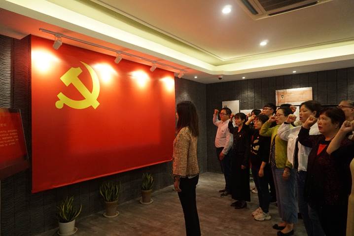 接着,党员同志们集中进行了誓词教育。该议程按照奏唱《国歌》、观看《看齐》、面向党旗宣誓、致共勉词及奏《国际歌》顺序依次进行。党员同志深刻感受到了作为党员身上的使命感和责任感,从内心深处感到能成为党员是无上自豪与光荣的事情,激发了爱党情怀。