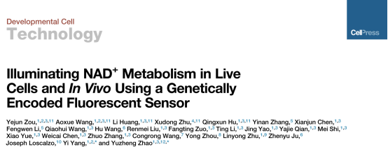 2020年3月19日,华东理工大学生物反应器工程国家重点实验室、药学院、光遗传学与合成生物学交叉学科研究中心赵玉政教授与杨弋教授合作在国际权威学术期刊Developmental Cell发表题为“Illuminating NAD+ metabolism in live cells and in vivo using a genetically encoded fluorescent sensor”的技术长文,报道一种NAD+代谢成像新技术,可原位、实时动态追踪细菌、哺乳动物细胞、斑马鱼、小鼠以及人源尿液干细胞等多种生物体内NAD+代谢水平。据悉,这也是该杂志近五年发表的国内首篇“Technology Article”。