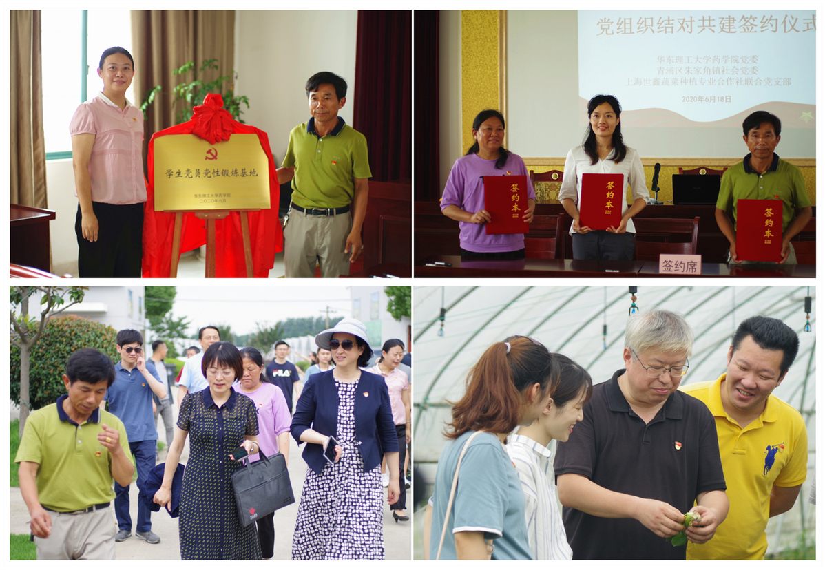 为认真贯彻落实中共十九大及十九届中央历次全会精神,创新基层党建工作载体,进一步为基层党建工作增内涵、添活力。6月18日上午,药学院党委与朱家角镇社会党委等党组织合作共建签约仪式在上海世鑫蔬菜种植专业合作社举行。共建单位间秉承“资源共享、优势互补、互相促进、共同提高”的发展目标,计划从协同助力“长三角生态绿色一体化”示范区建设、携手开展“四史”学习教育、合力共促基层党建和党员培养等方面开展共同合作。