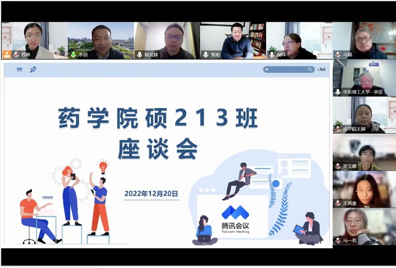 12月20日晚,药学院硕213班召开了以“研究生科研素养的提升和未来发展展望”为主题的云端座谈会。校党委常委、副校长李剑,学院党委书记倪炜,副院长马磊,植物保护学科负责人李忠及青年教师代表、研究生辅导员、硕213班全体同学们出席。会议由药学院党委副书记王越主持。