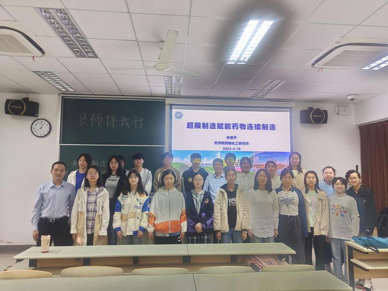 418日,2023年春季学期首场“良师伴我行”系列讲座圆满召开,朱维平教授作了题为《超限制造赋能,药物连续制造》的学术报告,并与同学们亲切交流。