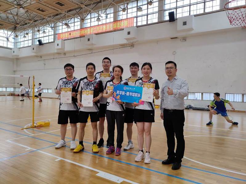 在本次比赛中,邵旭升、肖云盼、赵振江、李婷、付稳、李宗英和吴梦琪代表药学院,与校图书馆联合组队进行了混合双打项目的循环赛。在比赛中,几位老师奋力拼搏,挥洒汗水,为我院争获2023年华东理工大学羽毛球月月赛团体第三名!比赛现场气氛热烈,运动员们充分发挥团结奋进、顽强拼搏的精神,展现了昂扬的斗志和精湛的球技。
