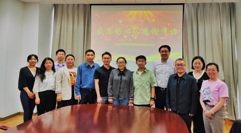 倪炜和赵玉政为两位退休教授献上鲜花并赠送退休纪念品。赵玉政充分肯定了姚蕾老师为药学院发展所做的贡献,对姚老师在本科教务工作中,长期以来的辛勤耕耘和无私奉献深表敬意,衷心祝愿姚老师退休生活幸福美满,并真诚地希望姚老师“退休不褪色”,为学院工作继续发光发热。