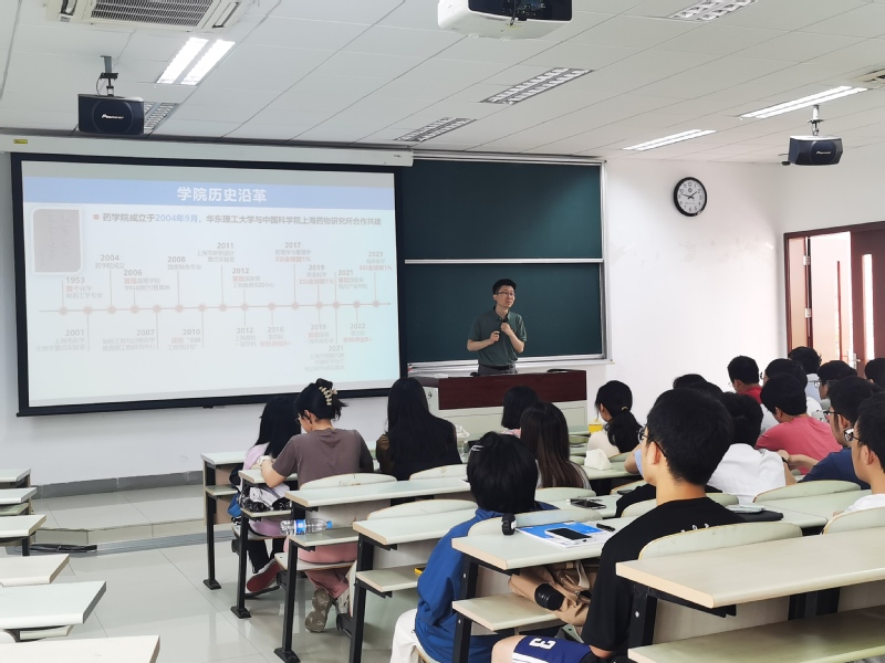 “从远古天然产物时期到如今后基因组药物分子设计时期,药物发现的历史是人与自然不断奋斗的历史。”马红梅介绍了药物研发史及国内外行业现状,让全体同学倍感身为当代药物工作者所肩负的历史使命;洪鸣凰与孙仲颖通过动画演示的方式,介绍了药学院重要研究方向之一的计算机辅助药物设计,使同学们对计算机应用药物设计的方法、工具等有了初步认识,在拓宽自身知识面的同时也更加深了对药物设计的兴趣与热情;刘朝阳向大家介绍了制药车间生产的模拟沙盘,沙盘虽小,其背后的设计却与人民生命安全健康息息相关。