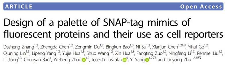 近日,我校药学院、生物反应器工程国家重点实验室、光遗传学与合成生物学交叉学科研究中心杨弋/朱麟勇/陈显军团队在活细胞蛋白质标记与成像研究中取得重要进展,在《Cell Discovery》期刊发表题为“Design of a palette of SNAP-tag mimics of fluorescent proteins and their use as cell reporters”的研究文章。