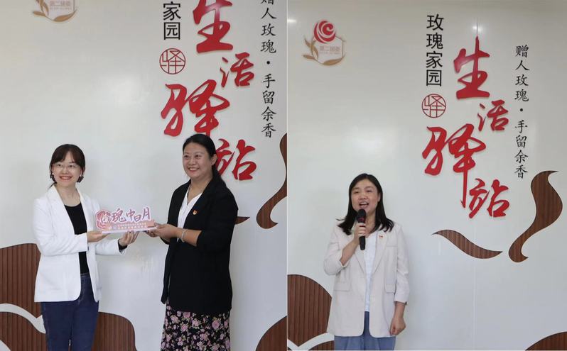 王越与王婧共同为“瑰中日月”玫瑰家园健康服务点项目揭牌,药学院药物科学系教工党支部党员胡泽岚副教授为现场居民详细介绍了项目的核心优势和期望效果。