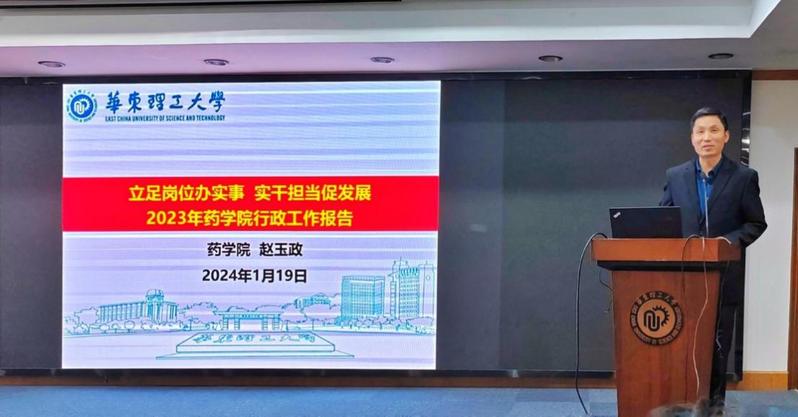 副院长(主持工作)赵玉政代表学院行政班子作了行政工作报告。他从学科与师资队伍建设、人才培养、科研项目与科研成果、本科教育教学审核评估、国际交流与合作、行政经费使用情况等方面做了报告,全面回顾总结了学院在2023年所取得的成绩,并提出2024年学院发展总体思路,将围绕“健康中国”建设目标,集技术创新、特色教育、产业应用于一体,为建设整体实力国内一流、国际知名的研究型学院,贡献华理智慧力量!