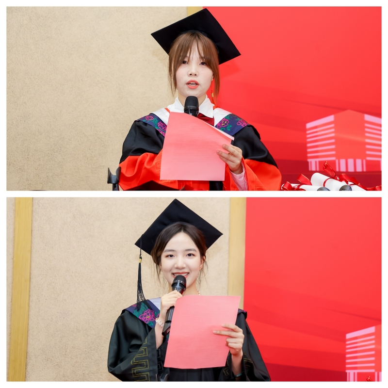 2024届博士研究生汪祎梦、本科生潘诗祺作为毕业生代表发言。汪祎梦同学分享了自己科研探索中的点点滴滴,表达了对母校深深的眷恋与感激之情。未来将继续秉承药学院的优良传统,不忘初心,继续前行,为我国医药事业的发展贡献自己的力量。潘诗祺同学感谢学院提供的优质教育资源和师长们的辛勤栽培,将带着学院的期望和祝福,勇敢踏上新的征程,祝愿母校繁荣昌盛、蓬勃发展。