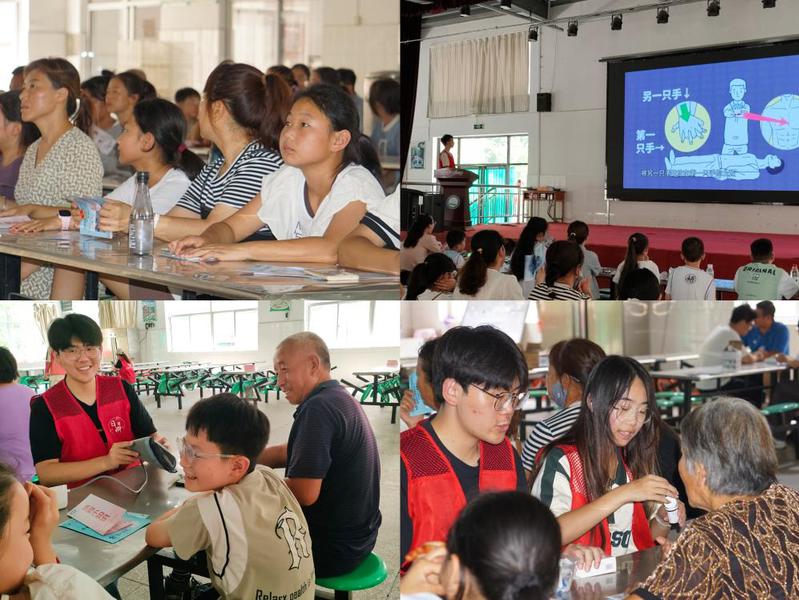 实践团成员发挥专业能力,在陌南中心小学开展急救培训与健康知识科普活动。团队成员带着精心准备的疾病防治指南和急救知识手册,细心讲解了常见疾病的预防与治疗方法,演示了海姆立克急救法和心肺复苏术等急救方法的要点步骤,并现场为村民提供血压、血糖检测服务。希望通过活动提升大家的健康意识,也为乡村振兴注入青春力量。