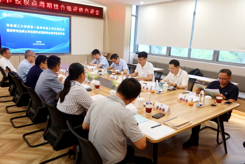 9月20日上午,药学一级学科博士学位授权点和药学专业硕士学位授权点周期性合格评估会在实验十八楼418室顺利召开。评估专家组由中国科学院上海分院副院长高召兵研究员,上海交通大学药学院院长、全国药学专业学位研究生教育指导委员会委员张翱教授,海军军医大学药学院院长盛春泉教授,上海交通大学医学院临床药学院副院长、国务院学位委员会药学学科评议组成员张健教授,复旦大学药学院副院长周璐教授组成。华东理工大学研究生院副院长刘涛,药学院院长赵玉政,党委副书记王越,副院长马磊,学位点负责人唐贇、张永强,研究生岗负责老师以及学位点教师代表参加了会议,会议由副院长马磊主持。