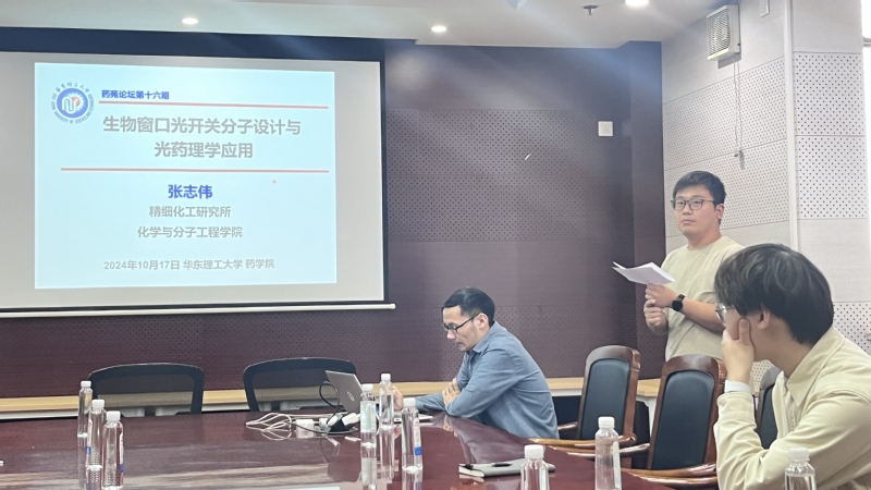 10月17日上午,华东理工大学化学与分子工程学院特聘副研究员张志伟应邀为药学院师生作题为“生物窗口光开关分子设计与光药理学应用”的学术报告,报告会由付稳老师主持。