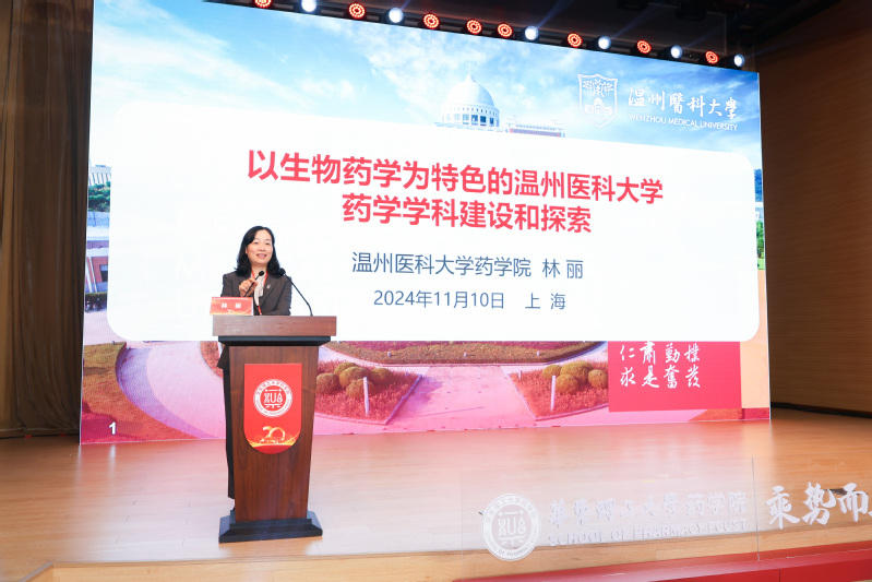 温州医科大学药学院院长林丽教授以“生物药学为特色的温州医科大学药学学科探索与实践”为题,介绍了温州医科大学药学院以细胞生长因子药物为依托,在生物药物上面做文章,在教学、科研和社会服务等多方面取得的长足进步。