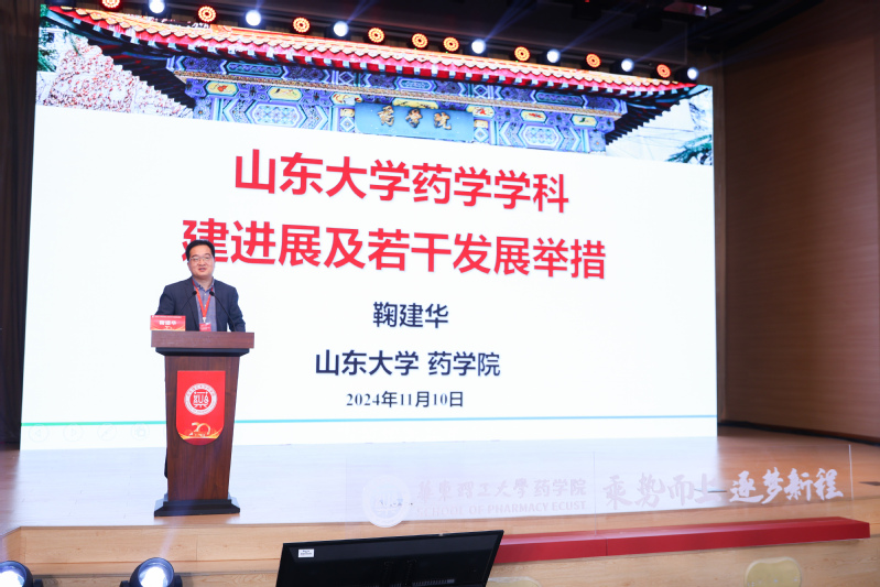 山东大学药学院院长鞠建华教授以“山东大学药学学科建设进展及若干发展举措”为题,介绍了山东大学药学学科百年的发展历史,以及在人才培养、师资引育和科学研究等学科建设上的先进经验和举措。