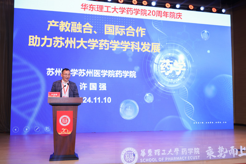 苏州大学药学院副院长许国强以“产教融合、国际合作助力苏州大学药学学科发展”为题,重点介绍了苏州大学药学院在产教融合和国际化方面的实践经验,尤其是苏州大学药学院药学全英文教改班独具特色,在国际化方面做出了很多探索性的工作。