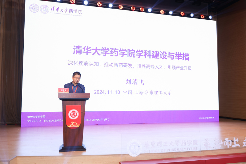 清华大学药学院党委书记刘清飞教授以“清华药学学科建设情况及举措”为题,介绍了清华大学药学院依托其优秀的相关学科优势,一流的师资和生源,高起点建设药学学科,短时间内取得了令人瞩目的成绩。