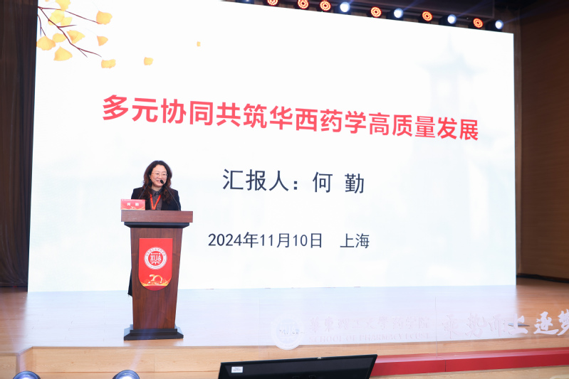 四川大学华西药学院副院长何勤教授以“多元协同共筑华西药学高质量发展”为题,强调药学学科是一个多学科多领域交叉融合的学科,需要产学研医等多方协同,才能在人才培养和科学研究上实现高质量发展。